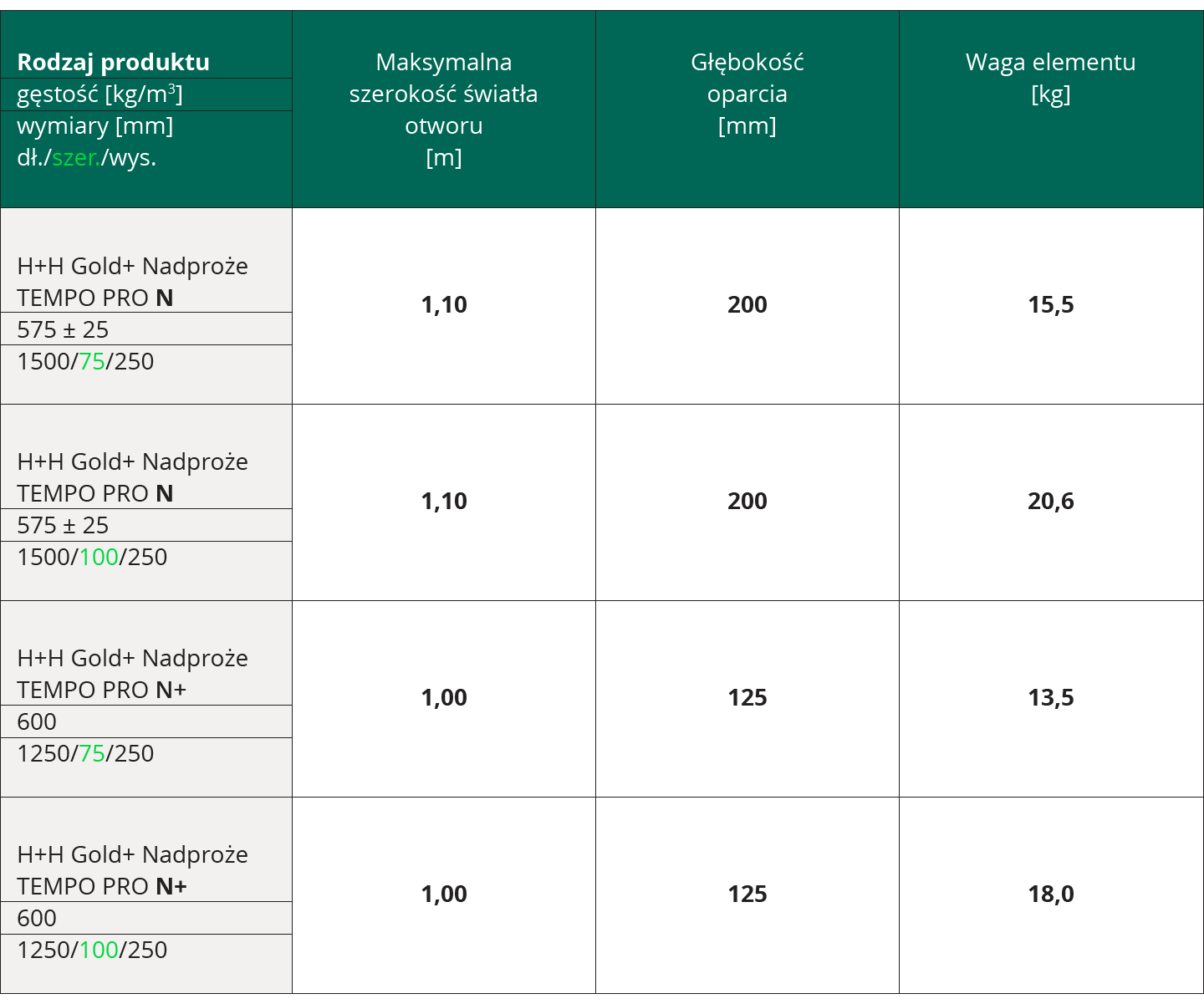 Nadproża TEMPO PRO N/N+ to elementy z betonu komórkowego tworzące gotowy wariant nadproża w ścianach działowych Systemu TEMPO PRO w wersji niezbrojonej (N) i zbrojonej transportowo (N+).